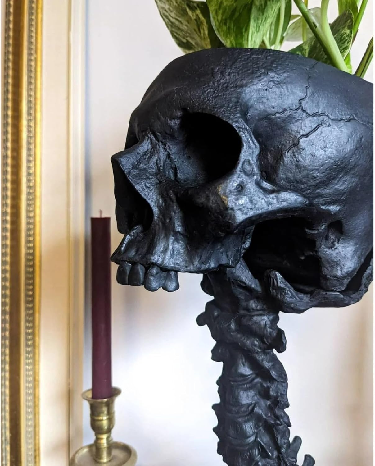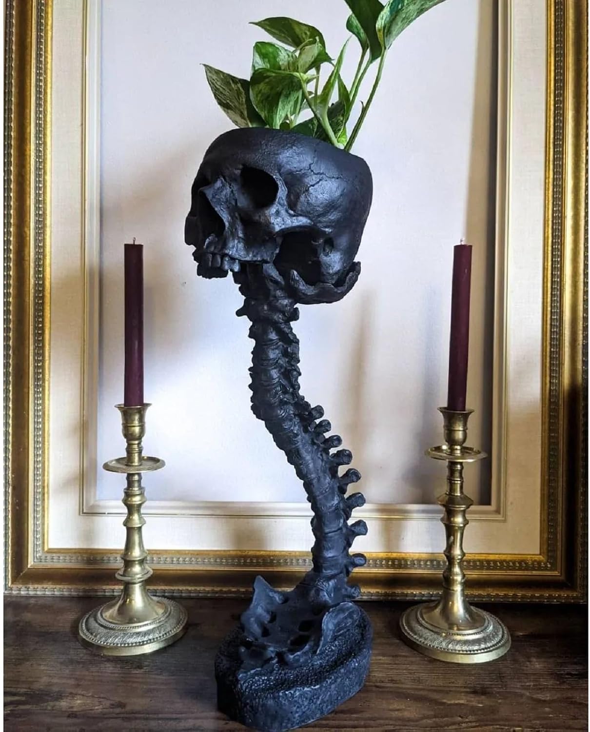 Realistic & Horror Skull Decor:Skull cool planter pot adopts pure hand-carving technology, exquisite workmanship, lifelike, nice gothic home decor and halloween decor! You will be shocked by its exquisiteness! It can also be used for skull candy bow, Halloween skeleton head decor, Halloween decorations indoor and outdoor!